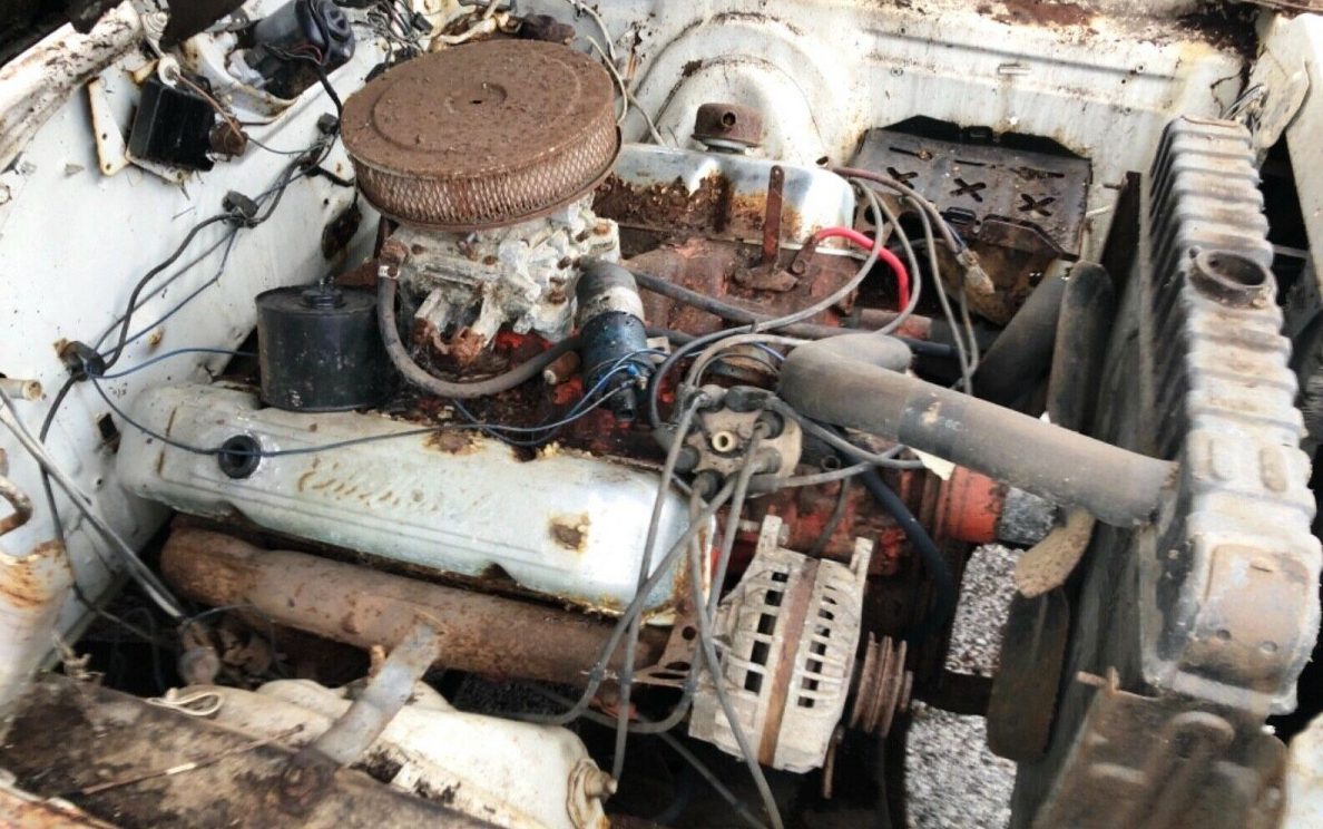 Visible white and blue paint mentally and visually camouflage the car’s original exterior color combination of DY3 Cream paint with a black vinyl top. Check out this similar car to appreciate this attractive and understated look. This car would have had the V21 triple-black stripes on the hood, a nice compliment to the black top. The lack of undercarriage pictures or written description of rust (other than calling it “repairable”) leaves many questions unanswered. Despite eBay’s global audience, this is truly a local sale for someone willing to visit Conshohocken wearing coveralls and carrying a good-sized screwdriver with which to stab the structural members.