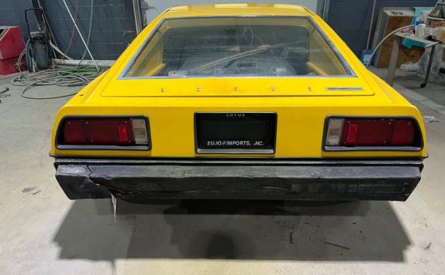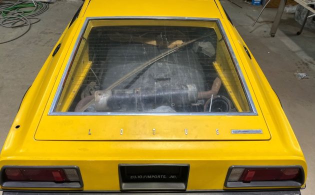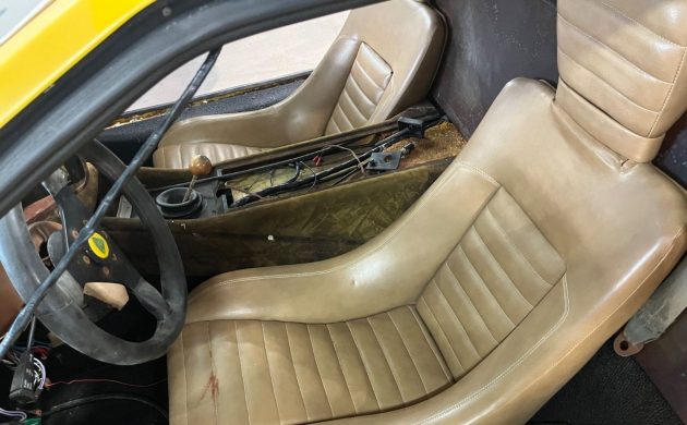 The seller states that the car’s exterior is in surprisingly good condition, with only some gel coat cracking visible. Importantly, the body does not appear to suffer from the lacquer checking and widespread cracking often seen on S1 Esprits. The windshield is cracked, but the rest of the glass is intact and in good condition.