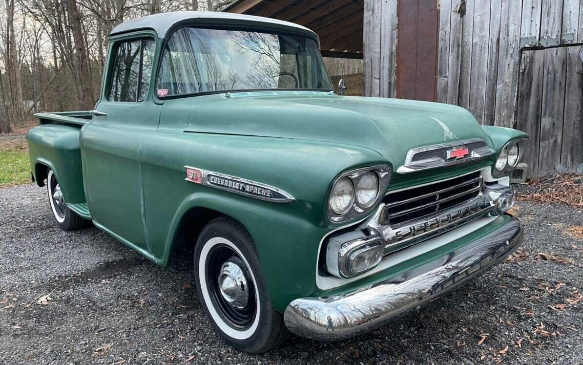 The popularity of old Chevrolet pickups just keeps truckin’ along. Today, for your review, we have a member of the “Task Force” edition (’55-’61) in the form of a 1959 Apache 3100. It has a very nice original presence about itself so let’s see what’s here. Residing in Greensboro, North Carolina, this green machine is available, here on eBay for a current bid of $18,100 with the reserve not yet met.