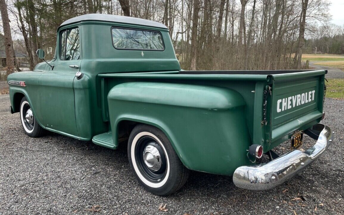Nice truck but not entirely original as in wearing drivetrain, paint, upholstery it was born with. Close…. but look clearly at the cab corners; they have been worked before. Paint is similar on everything else, but is not really appearing as the paint it wore as the ’50s ended. I would love to own it, but not at the 20 it’s bid to at present. I don’t believe it will somehow escape the knife of a resto-modder in it’s near future, as this type of presentation often goes that way. Sincerely I hope I am wrong about that