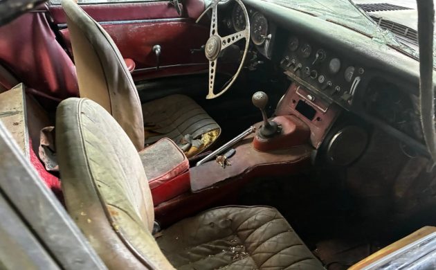 The dash was one of the defining interior features of the Series 1 E-Type. Buyers received traditional toggle switches that have an inherently “correct” feel in British sports cars, with the company eliminating these in favor of rocker switches in what became known as the Series 1½ cars that emerged during 1967 and early 1968. The first owner ordered this Coupe with its interior trimmed in Red, but, as with the exterior, time hasn’t treated it well. The radio is gone, the wheel is broken, and I can’t spot a single soft trim piece that is salvageable. Therefore, the new owner faces the significant cost of a complete interior restoration to recapture the former glory. Trim kits typically cost over $5,000 before the builder even considers replacements for the wheel and radio.