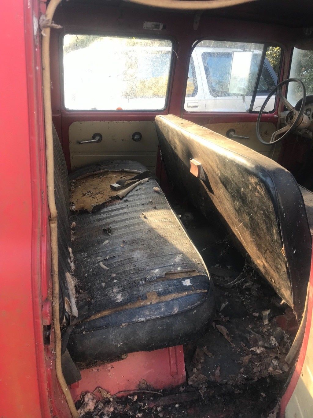 The interior of the truck looks a bit on the scary side. It is complete, but it looks like a flock of birds may have been nesting in there judging by the “deposits” that are present on the seats. Still, apart from the seat covers, the rest of the interior is in quite good condition, and shouldn’t take much work to whip into shape.