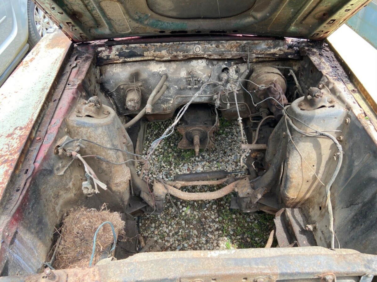 Looking past the very crusty paint, what can be seen externally is rust that is fairly typical of 1st Generation Mustangs. This has impacted the lower rear quarter panels, along with the bottom corners of the doors. I initially thought that there was rust appearing in the filler panel between the rear window and the trunk lid, but it looks like this is only some pretty old and rotten leaf litter. What does look good are the rockers. They appear to be nice and solid, with no signs of any problems. Delving below the surface, and we find a trunk pan and drop-offs that have seen better days, and all will require replacement. The major issue surrounds the floors, which have been patched at some point. The workmanship is pretty amateur and has been completed using some flat steel plate. Whoever completed the work has then slapped on what looks like some form of bitumen-based paint to protect their handiwork. However, I suspect that the next owner will want to cut the patches out, and will probably replace the floors entirely. Good news comes in the form of the frame rails all appearing to be solid, although they do wear a significant coating of surface corrosion. The same would seem to be true of the torque boxes and the shock towers, although there may be some rust present below the battery tray. The vehicle is a case of “what you see is what you get.” The photos indicate that the grille and the front valance are both present, but there are a lot of trim pieces, including the front bumper, that are missing. Most of the tinted glass is in good condition, although some severe cracking will mean that the windshield will need to be replaced.