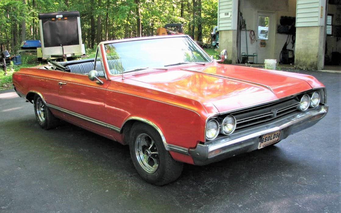 Back in time(1975 or so), My brother had a 1965 Cutlass Convert., I am not 100% sure , But I think it had the 455, auto with the console. He got a speeding ticket for 25.00 and had to pay it or lose his lic. We drove it to Kadinger’s auto salvage and got 35.00 dollars for it. Then we walked 8 miles home. The next time he said- Hey ya wanna go for a ride, I said NO.