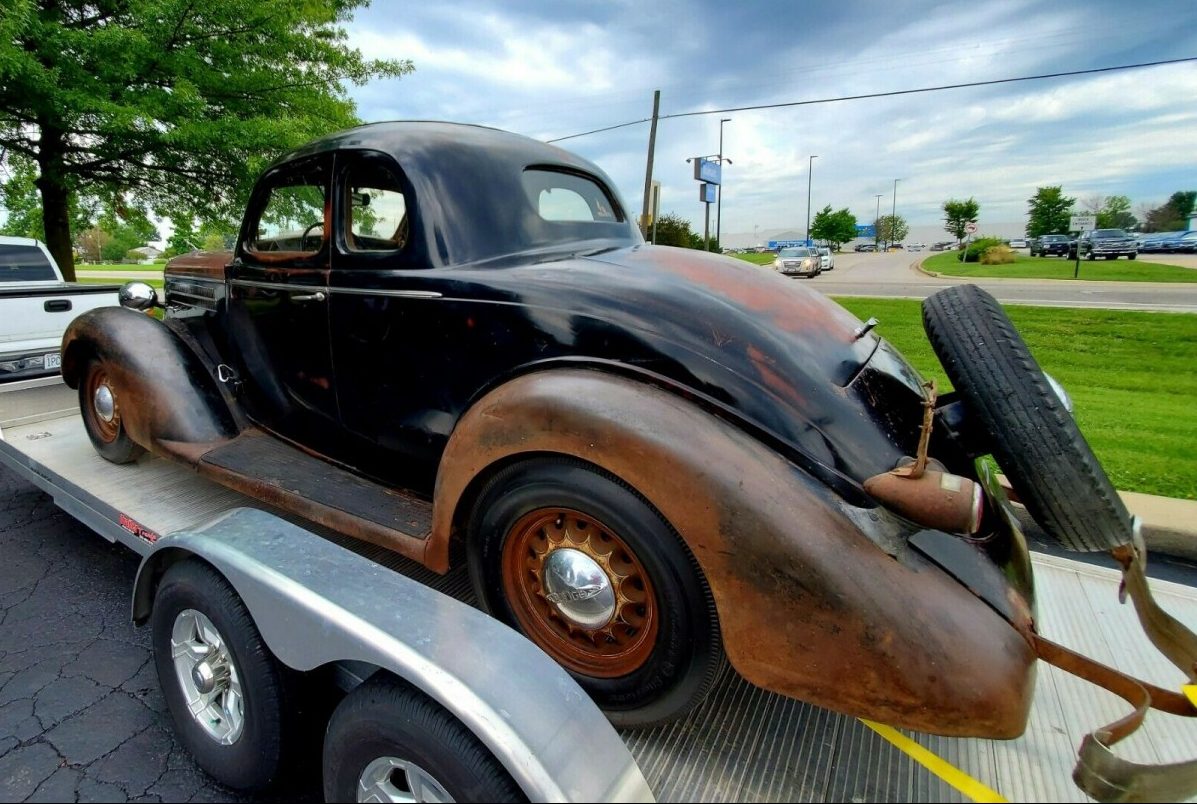 A very complete car for being a `35! I would do a frame-off of it, but perhaps change the color to something lighter that would show off it’s lines. A nice cream shade with rust-colored rims perhaps?