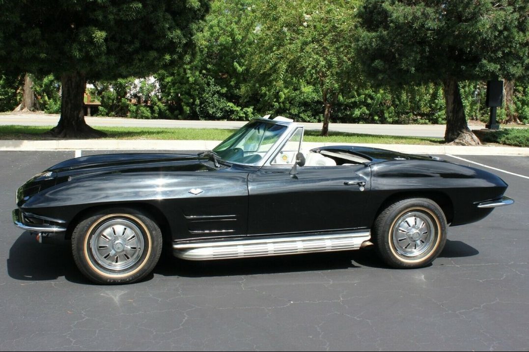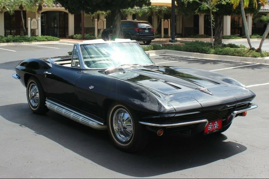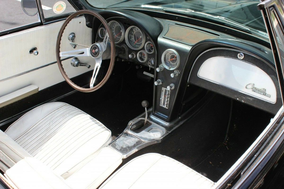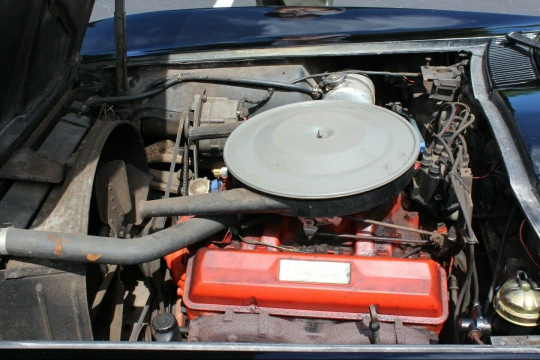 Finished in Tuxedo Black, the Corvette has apparently received a repaint at some point in its life. The owner says that it would be a great basis for a restoration project, or that it could be driven as it currently stands. We receive no information or photos to confirm the Corvette’s structural integrity, but the owner makes no mention of any rust issues, so we can be quietly cautious in that regard. The side-pipes as fitted to the car aren’t original, but everything else does appear to be. The external trim and chrome appears to be in good condition, while the car comes with both a soft and hard top. Having said that, the hardtop has been finished in vinyl, and that looks quite tired. Similarly, its headliner also looks quite shredded.