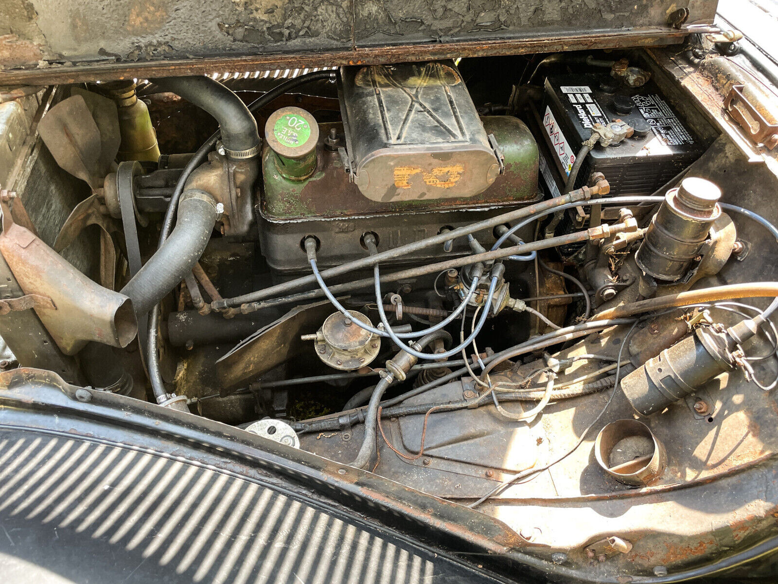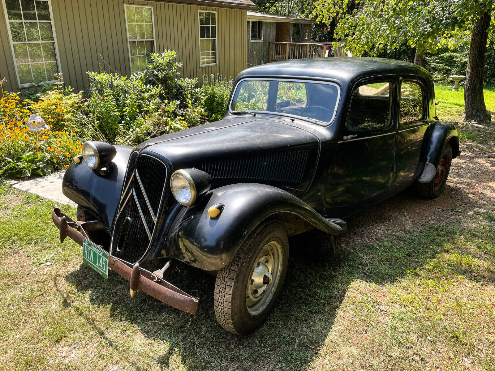 Citroën launched the Traction Avant (literally “front drive”) in 1934. The car is an amalgamation of the Lambda’s independent suspension and monocoque construction, augmented by rack and pinion steering (in 1936), hydraulic brakes, and front-wheel drive. Engines at first displaced just 1.3 liters but advanced in size over a matter of months. This example has its factory-supplied 1.9-liter four-cylinder, paired with a three-speed manual gearbox. The gearshift lever is on the dash. A previous owner installed an electric fuel pump and a relatively new exhaust. Its underside is heavily scaled in rust, but the body is said to be in good condition and sporting its factory paint. Taking a page from Citroën’s idol, Henry Ford, until 1953 the only color offered was black.