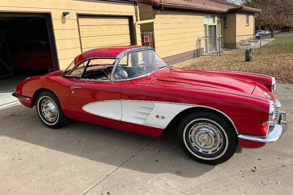 After a faltering start and difficult first few years, the Corvette had hit its stride by 1960. Chevrolet must have felt vindicated in their decision to persist through those troubled times because the 1960 sales total of 10,261 vehicles not only represented a new sales record, but it was the first year the tally hit five-figure territory. Never again would Corvette sales drop below that level, and the steady increase ensured the badge would remain with us to the present day. This Corvette wears striking Roman Red paint and is 1-of-779 to combine that shade with White coves. Its presentation is difficult to fault, with the paint shining beautifully and no evidence of significant fiberglass flaws. I’m sure an in-person inspection would uncover defects, but the initial impression is that this car is a tidy driver-grade vehicle. The seller mentions no issues with frame rust, and the lack of visible corrosion in other areas is encouraging. The Corvette comes with both tops, and the glass appears flawless. The trim and chrome sparkle nicely and the narrow whitewall tires perfectly suit the car’s character.