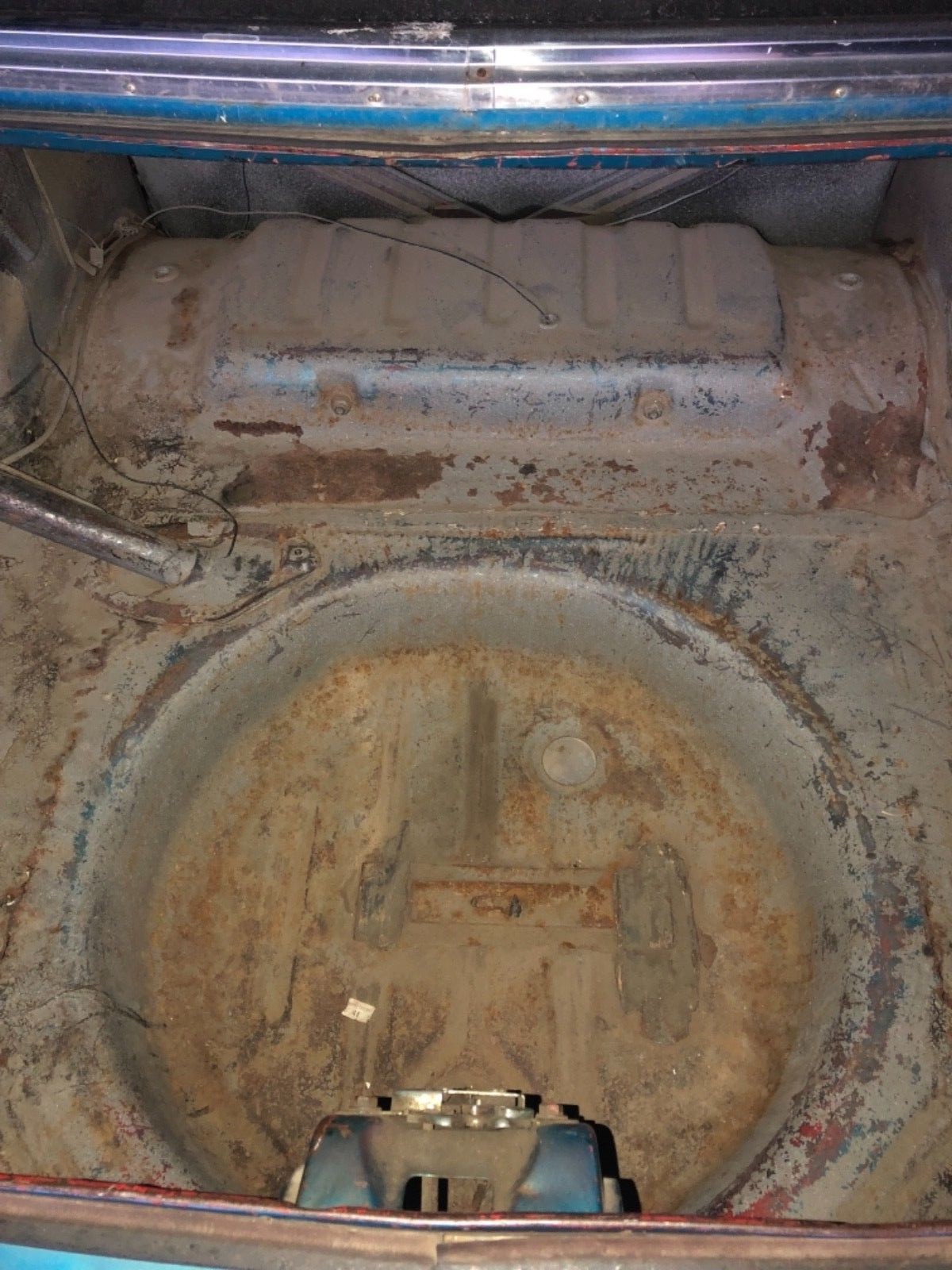 The owner says that apart from the paint on the scoops, the Duster wears its original paint, which appears to be Blue Fire Metallic. There is some rust to address in the car, the worst of appearing to be in the driver’s side quarter panel. However, the owner has a new quarter that will go with the car. There are no photos of the underside of the car, but the shots of the trunk show a relatively and solid floor with only a couple of very minor rust issues. There is also a really weird bubble near the front of the fender on the passenger side, which seems to indicate a repair with Bondo that has deteriorated quite badly.