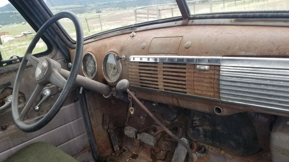 The old Chevy is said to run and drive, but the owner doesn’t suggest driving it too far at present. The tires are said to be pretty ancient and will need to be replaced. The 216ci straight-six starts and runs really well, and the 4-speed transmission shifts smoothly through all gears. The owner suggests that a full service and check should also be undertaken before the Pickup hits the wide open road. He also states that the generator charges, but that a full rewire would be a good idea. Apparently, the Pickup will also need a new exhaust and the leaking radiator will either require repair or replacement.