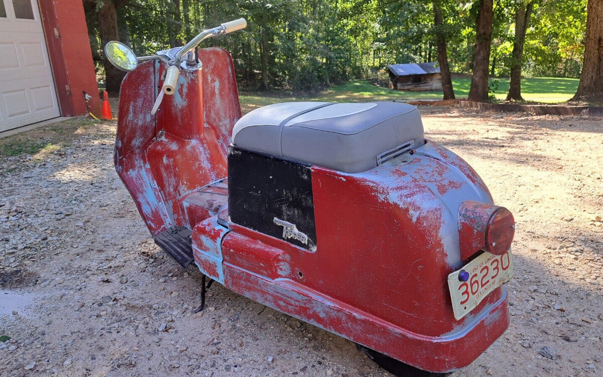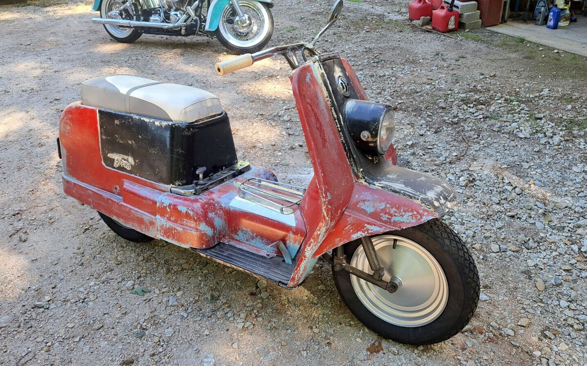 Scooters and fat chicks, they’re both alotta fun, you just don’t want your friends to see with them. But when you get to a certain age you don’t care what anybody says or thinks. These have quite a following and with all of that peeling paint should be restored. IMHO