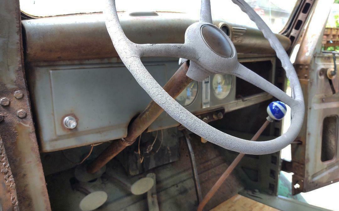 The company went on to build trucks a few times before their demise with the last “trucks” coming in the early-1980s as the Plymouth Scamp. They were more of a tiny El Camino-like car-based vehicle rather than a truck on a truck chassis such as this PT50. These trucks were only made from 1937 to 1941. The seller says that this truck has been stored for many years. It has the appropriate areas of heavy surface rust in the box and underneath, but nothing looks too jarring.