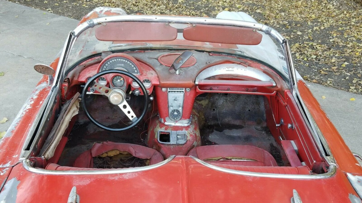 To say that this Corvette’s interior has seen better days would be understating things. There’s not much here in the way of upholstery that the buyer could save, although crucial parts like the seat frames, radio, and clock are present. However, there is another factor to consider here. It looks like the interior may have been open to moisture at some point. If this is the case, it will not have done the electrical system or gauges any favors. The gauges already need new lenses, and they may require a trip to an instrument maker to ensure that they are working and calibrated correctly. Overall, this aspect of the restoration has the potential to be pretty expensive.