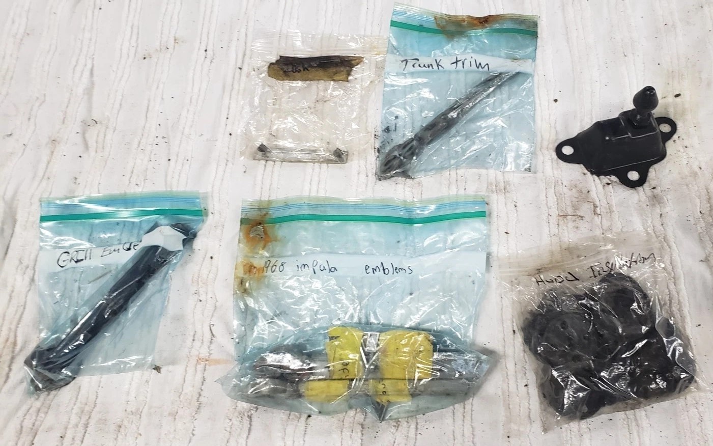 Parts bag labeled “1968 impala emblems”. Hope they were a carry over from ’67. I’ve always preferred the ’68s vs. ’67s, so I vote restomod. (But not w/ my $)