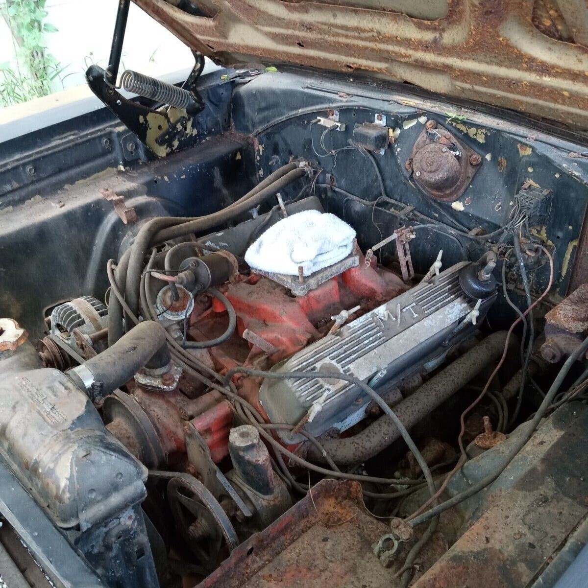 This Road Runner left the factory with Y4 Spanish Gold paint and a vinyl top (black?) and a black interior. The vinyl is gone and there are holes and rust where the chrome trim pieces used to be on the C-pillars. That could be the biggest challenge in fixing up this old muscle car, although more corrosion is said to be present in one of the dog legs, lower quarter panels, floors, trunk, and here and there. The health of the engine and transmission is unknown to the seller. He/she bought the car to restore it but has found another more desirable project.