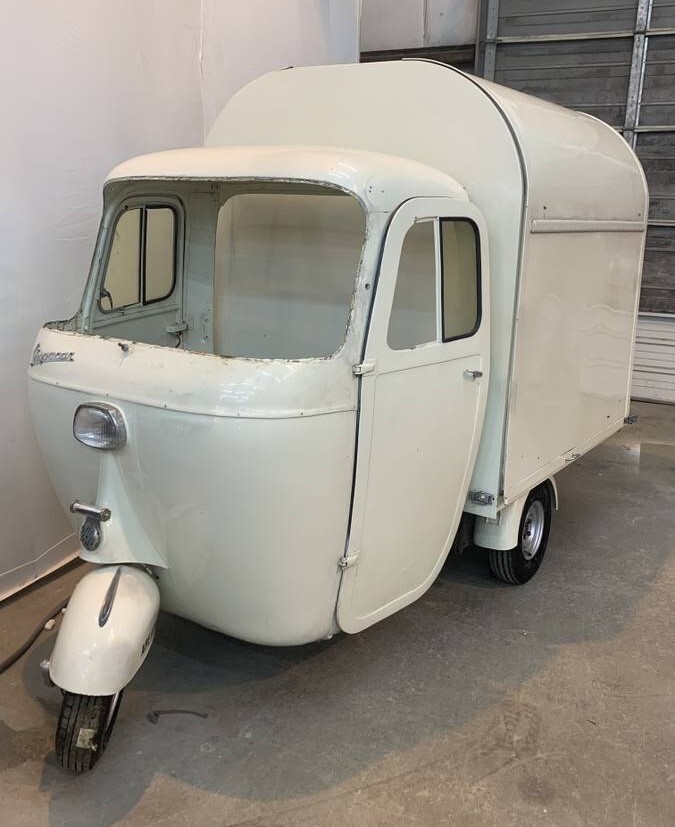 As World War II was ending, Piaggio began building scooters in Italy. They extended the product line in 1948 with the APE (pronounced ah-pay), which was a small utility vehicle that used a Vespa front end and engine. This edition from 1966 is an enclosed edition of a delivery vehicle, but it’s not currently in running condition. With some TLC, this “van” could be back out of the road in relatively quick order. Located along the New Jersey shore, this Italian workhorse is available here on craigslist. The seller is taking “reasonable” offers. Thanks to Shan for this scooter/van find!