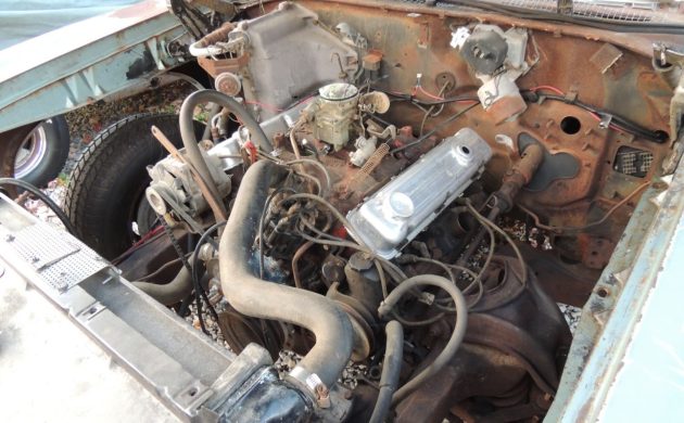 This is a real mess, lots of rust, Buick engine, missing parts and most of what’s still present look worn out or damaged. Better to keep searching for a nicer car as a starting point, it’s too far gone to justify its restoration.