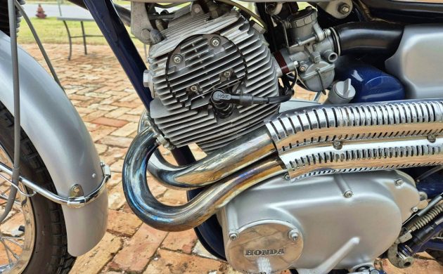 This is Honda’s 305-cc OHC parallel-twin with 28 horsepower and it’s backed by a four-speed transmission. This looks like a really nice example that I’m sure it would turn heads, either sitting at a vintage motorcycle show or while pumping out sound through that unusual exhaust system. Any thoughts on this one?