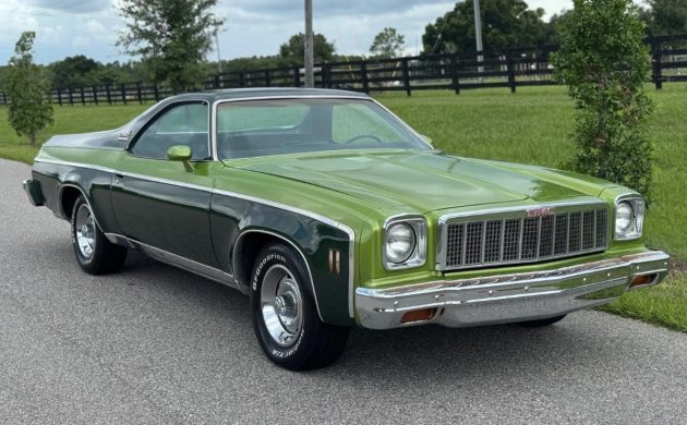 While said to have been restored a decade ago, this 1975 GMC Sprint, GMC’s version of the Chevrolet El Camino, has some rust issues that need to be dealt with underneath and possibly elsewhere. They mention some bubbling paint and rust underneath, but bidders don’t appear to be scared off by that. They have it listed here on eBay in Clermont, Florida, and the current bid price is $8,300.