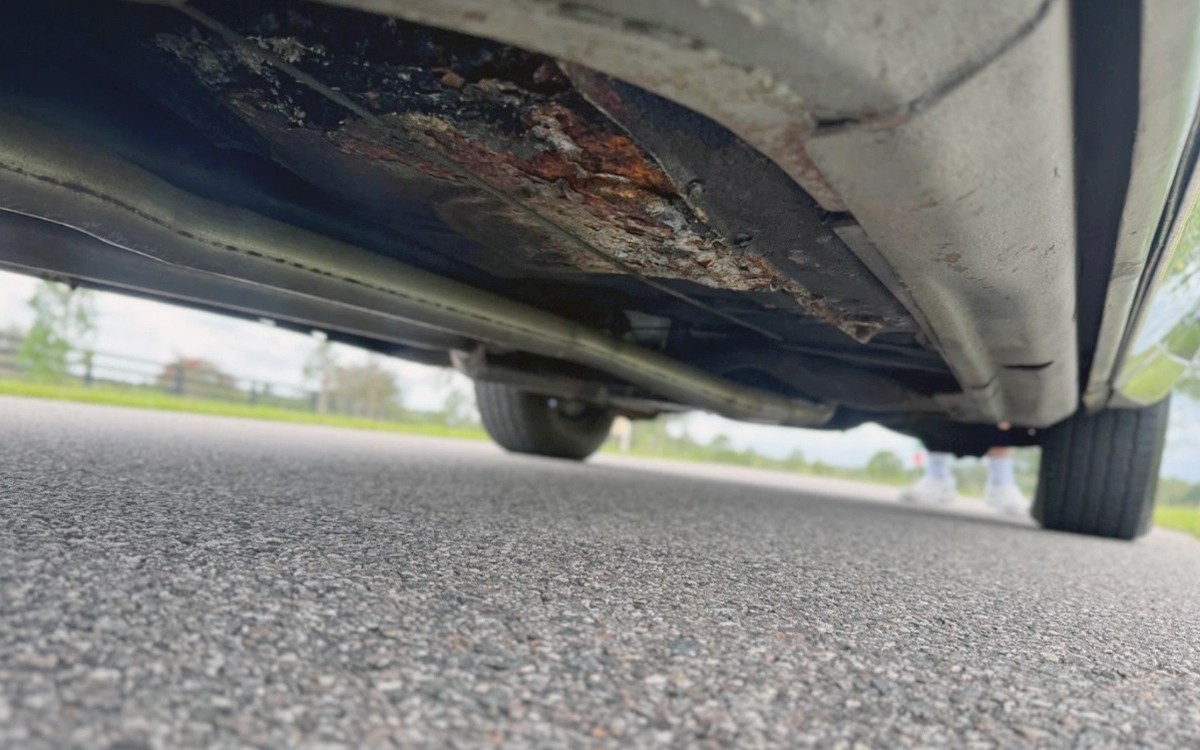 It’s hard to tell in the overall photos; it looks like it just jumped out of a brochure, but the seller has included a few detailed photos showing the rust areas. The underside is the part that worries me the most, as they say the driver’s floor is getting a little weak. They don’t show all of the areas, but it must not be enough to worry the bidders, who have bid it up to $8,300 so far. Florida can have big issues with vehicle rust, despite their slogan as The Sunshine State. You can’t see it here, but the top of the bumpers have some rust to deal with.