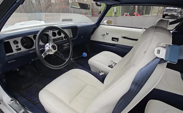 The seller states that the car has new paint, new suspension and a new interior but the engine is original. Besides some additional badges added to the exterior, the bright blue wheels stand out the most. This wheel treatment is bold and is probably loved or hated by most enthusiasts. The wheels on this 1977 Trans Am are the factory 15×7 aluminum snowflake wheels introduced by Pontiac in 1977 that have probably been powder coated a metallic blue. If you like this color combination, you can’t beat the excellent condition of this 1977 Pontiac Trans Am.