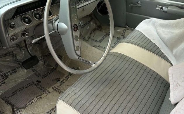We assume the restoration on this 101,000-mile Chevy is fresh, as the carpeting film has yet to be removed. No VIN or cowl tag is provided, which you would think a dealer would include. So, we don’t know if the Impala was redone exactly the way it left the factory or if some deviations have taken place. Perhaps the vehicle had a 283 CI V8 when it was new, but the 327 from 1962 or later occupies the engine bay now, and it’s been rebuilt. We assume the automatic transmission is a Powerglide.