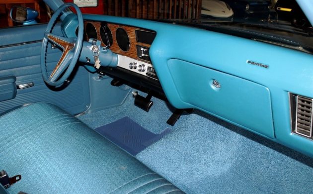 If you were expecting something approaching perfection, this Pontiac’s interior doesn’t disappoint. There really isn’t much to say beyond the fact that it presents in as-new condition. The Blue combination of cloth and vinyl perfectly complements the exterior paint shade, while the faux woodgrain provides a luxurious feel. It isn’t loaded with factory options beyond the AM radio, but the overall appearance offsets the lack of features like air conditioning.
