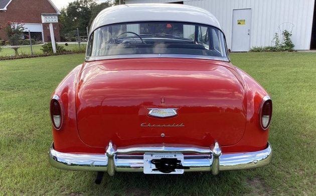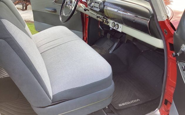 Sales of the very similar 1954 210 2-door sedan were off by 21% compared to 1953. Perhaps the cars were too similar, or buyers were waiting for the all-new 1955s. As was typical in the mid-1950s, this Chevy has a “3-on-the-tree” manual transmission. We’re told everything on this car works as it should, and the body, paint, and interior all look ship-shape.