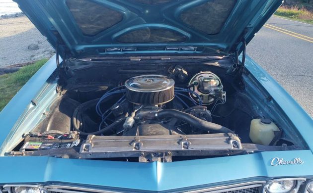 The fender insignia implies this car had a 327 cubic inch V8 when new, but that doesn’t mean the car is numbers-matching now. An Edelbrock intake manifold was added, so a 4-barrel carburetor was likely the reason. Headers were installed, and a rebuilt M21 4-speed manual transmission is there; whether that was the factory setup isn’t known. The Rally wheels are wider in the back than the front, and power disc brakes help with the stopping. In a world of Super Sports, real or fake, this lower echelon muscle car is a breath of fresh air.