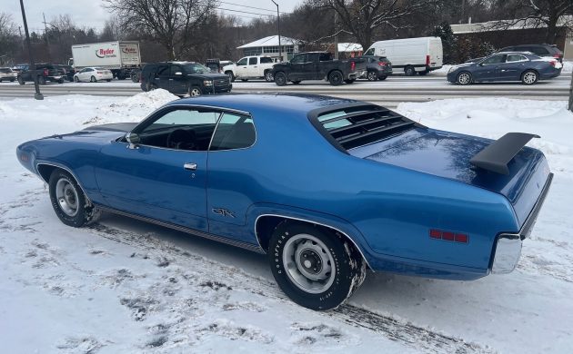 While the name lived on as the Road Runner GTX on all Road Runners ordered with a 440 until 1974, the final year for the GTX as a stand-alone model was 1971, making this one essentially a one-year-only offering since the car was totally redesigned for ’71. No information is given about what this Plymouth looked like before the restoration, but the panels appear to be in great shape now, and the True Blue Metallic color paint has also been applied to the underside. Outback, both a trunk spoiler and a rear window louver have been added, making this one appear equally menacing from this viewpoint.