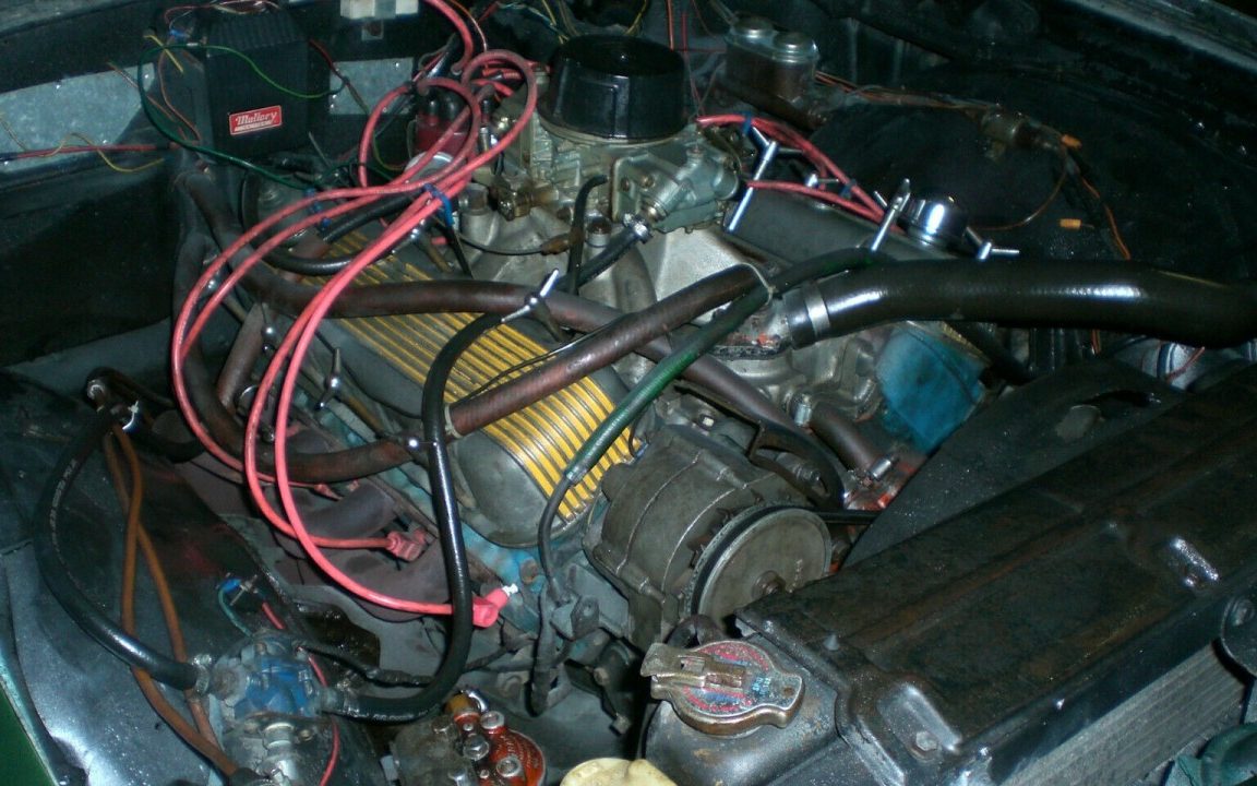 As mentioned before, the current engine is a big block 454 that has 12.5:1 compression with an automatic transmission. The seller believes it is a turbo 400 but says it’s hard to tell due to the transmission shield. The car was last registered in 1989 and has been parked since. The seller put in a new gas tank, plugs, oil, and filter and says it “runs good”.