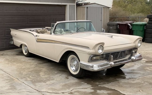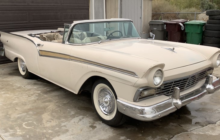 Never was a fan of the Skyliner , but I really liked the hardtop 57s . They were known to be rusters however , and there is at least some filler in the car ; the Fairlane script is missing from the front of the car, and there are no mounting holes seen . There aren’t any really good pictures of the sides or rear of the car. As with any old car , you would really want to look this over before buying