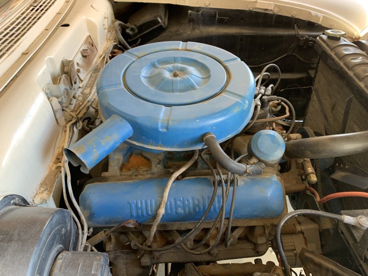 We’re told this car comes with a 390 cubic inch V8 under the hood, and the Thunderbird lettering on the valve covers tends to support that. But it must not be the original engine as you couldn’t go bigger than a 312 V8 in 1957. In fact, none of the three years of production were offered with anything over 352 cubes. The seller is throwing in an extra 272 V8 and automatic transmission that we’re told will need rebuilding. Perhaps that drivetrain is what was in the Skyliner originally.