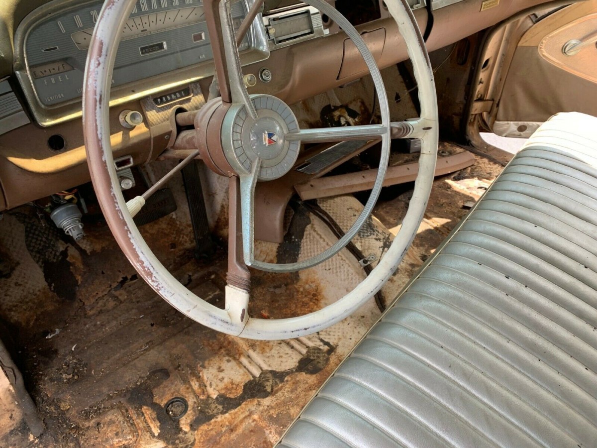 OK, I’ll admit this idea is not for an amateur like me, but let me think out loud – this being a very rusty example it’ll require enormous amounts of work anyway. Wouldn’t it make a usable donor to build an Edsel Skycruiser out of…? I mean; if one should happen to be very good with bodywork and have access to a restorable Ranger or Pacer ?
