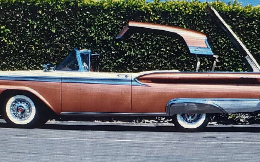 Earlier in the week, we covered this 1961 Ford Sunliner and I made mention of the ’57-’59 retractable top Skyliner. Well, today, looking very fiftyish in its salmon and white two-tone finish is just such an example, a final year ’59 model that’s in extremely nice condition. It’s located in Las Vegas, Nevada and is available, here on craigslist for $19,000.