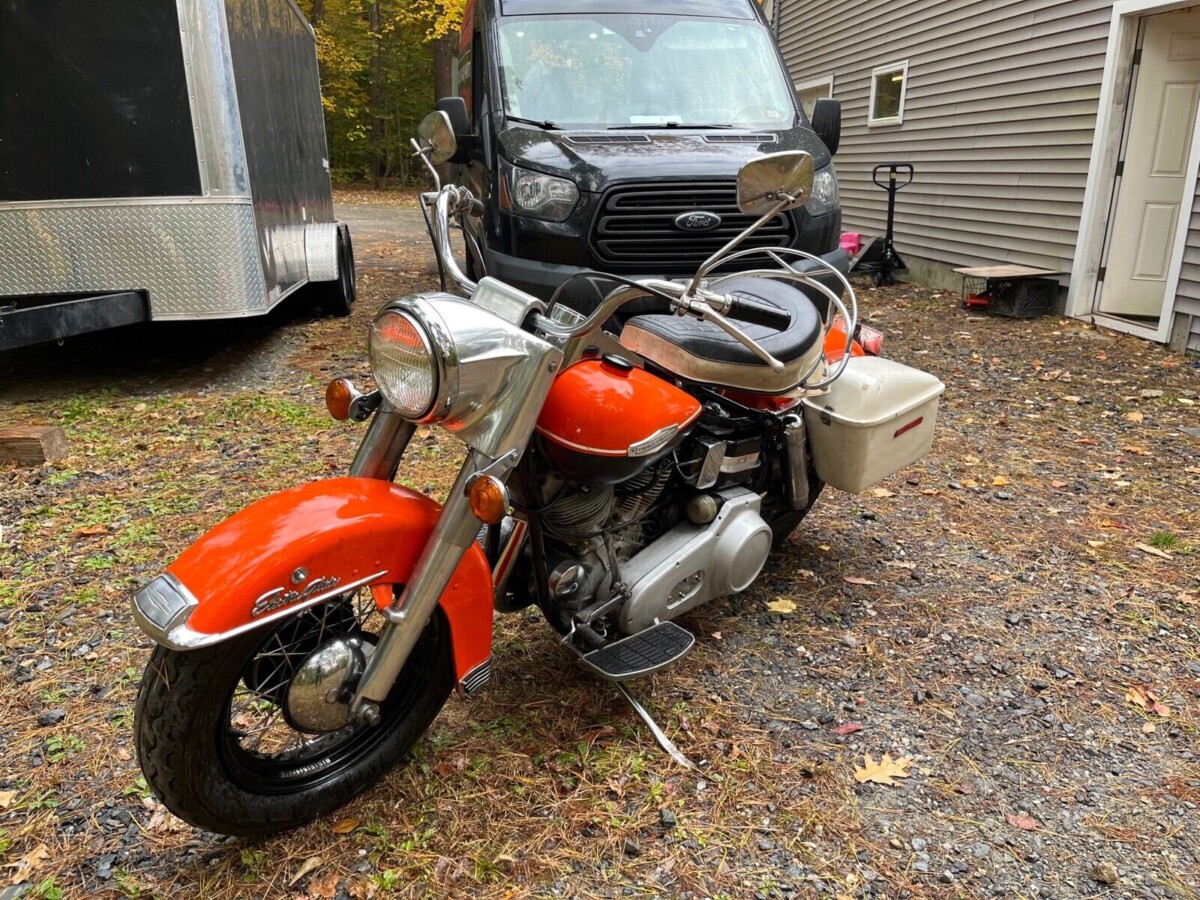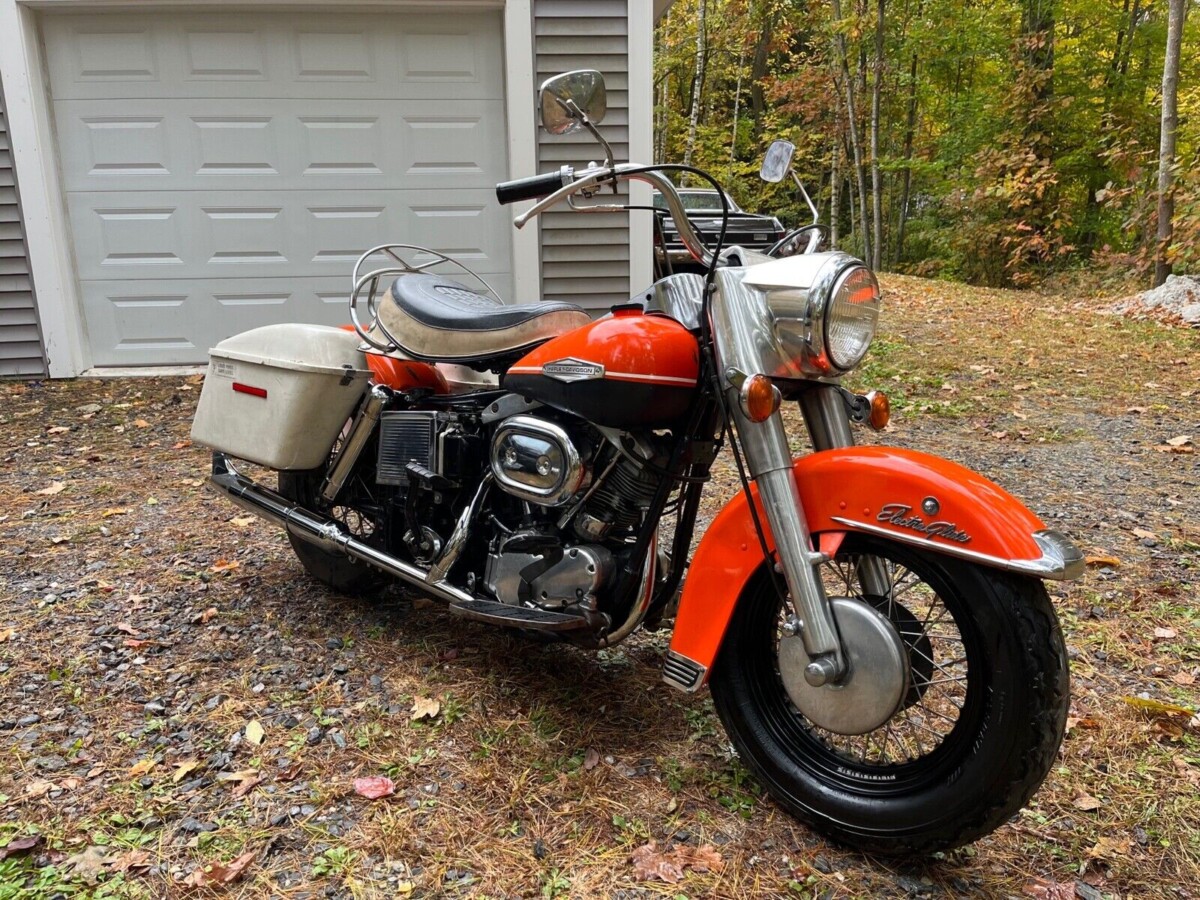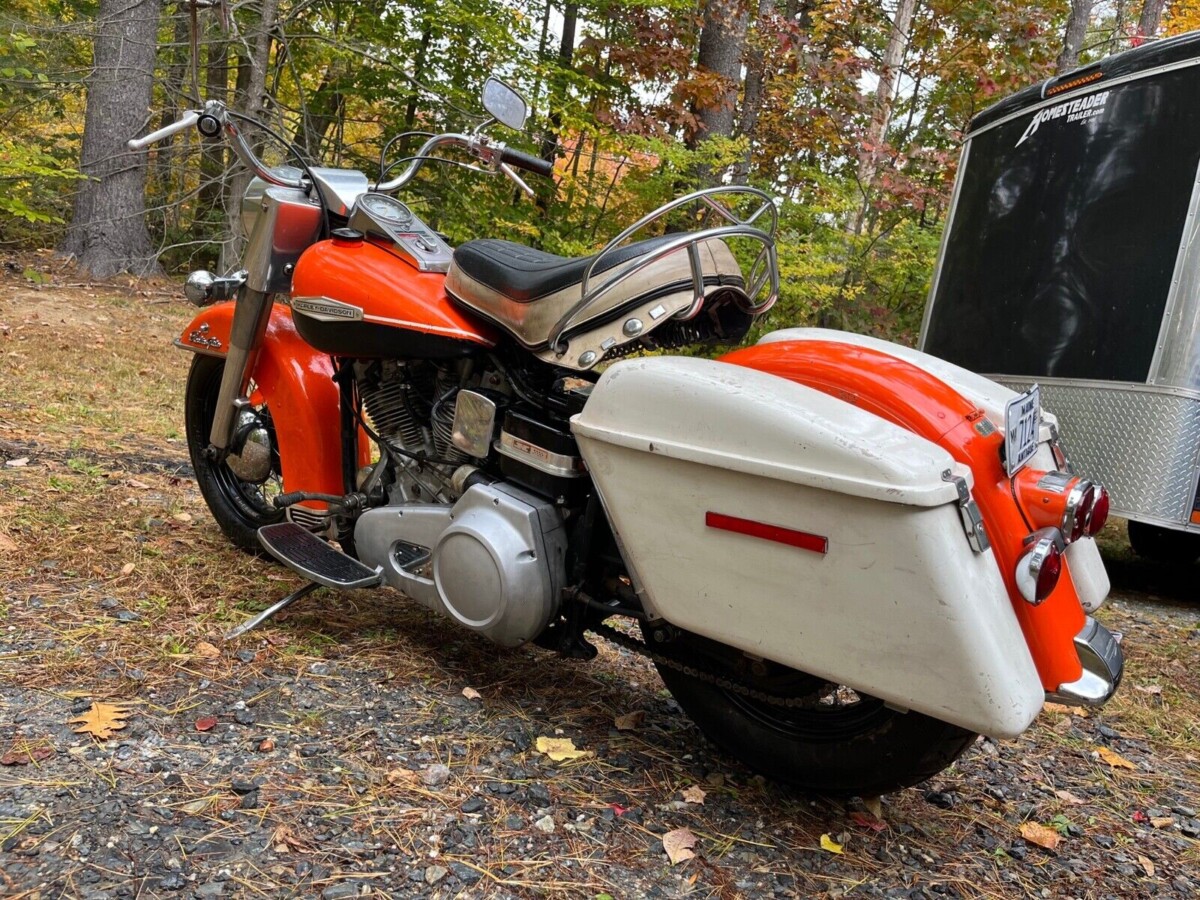 It must have worked to a certain extent. Elvis was known for riding this type of Harley, but Sonny Barger would never be caught dead on one in the late sixties when the bike you see here was built. A close look at the pictures reveals a lot of traditional touches on this motorcycle. It has the Hydra Glide front suspension, a kick start, an engine that would look at home in a thirties frame, and a two-tone fuel tank paint job to match. It even left the factory painted in Harley colors. Slap a 2022 engine in the frame, take away the kick starter, paint the bags, and this motorcycle would look right at home on the floor of any new Harley-Davidson dealership. All it would lack is an inflated price tag.