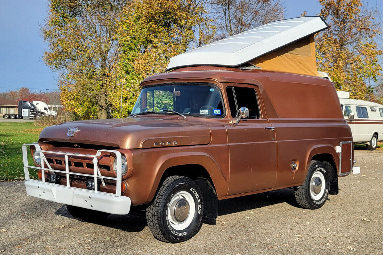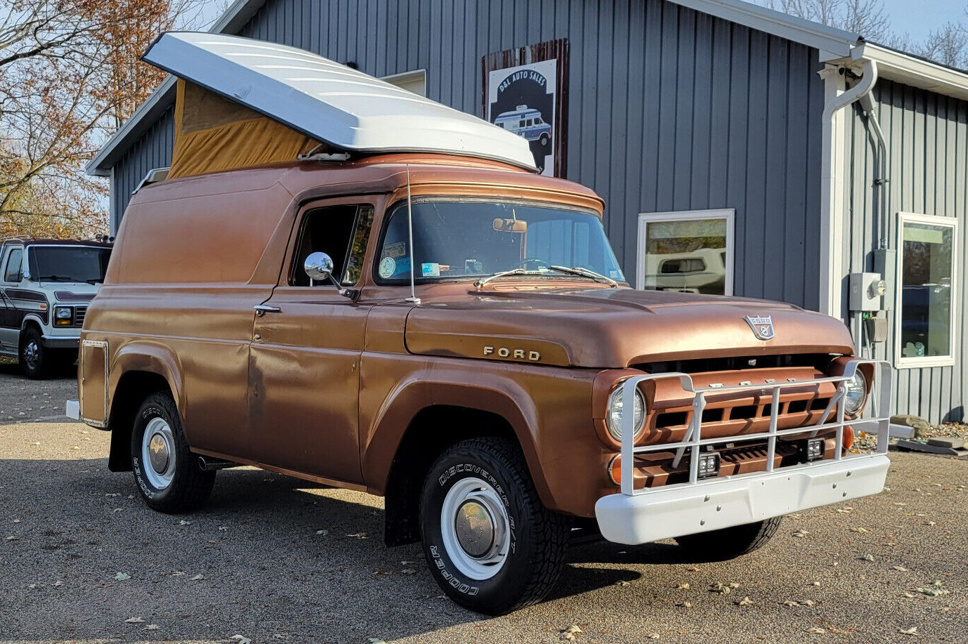 We sometimes feature classics at Barn Finds where determining how to start is challenging. Such is the case with this F-100. The seller indicates a previous owner converted the Panel Van to a Camper in the 1970s, adding a Volkswagen Westfalia pop-top. This doesn’t feature sleeping accommodation but adds significantly to headroom in the back of the vehicle. They performed the work on a rust-free, dry Texas truck, retaining the original steel and Copper paint. The vehicle spent years in storage before being revived and returned to its former glory. The seller didn’t touch the panels or paint, refreshing the bumpers and adding new seals to the pop-top. The wheels were repainted, and the attention to preservation included retaining the stickers from the previous owner’s cross-country adventures. This Ford isn’t perfect, but it is guaranteed to draw crowds. However, the exterior is just the beginning of this automotive adventure.