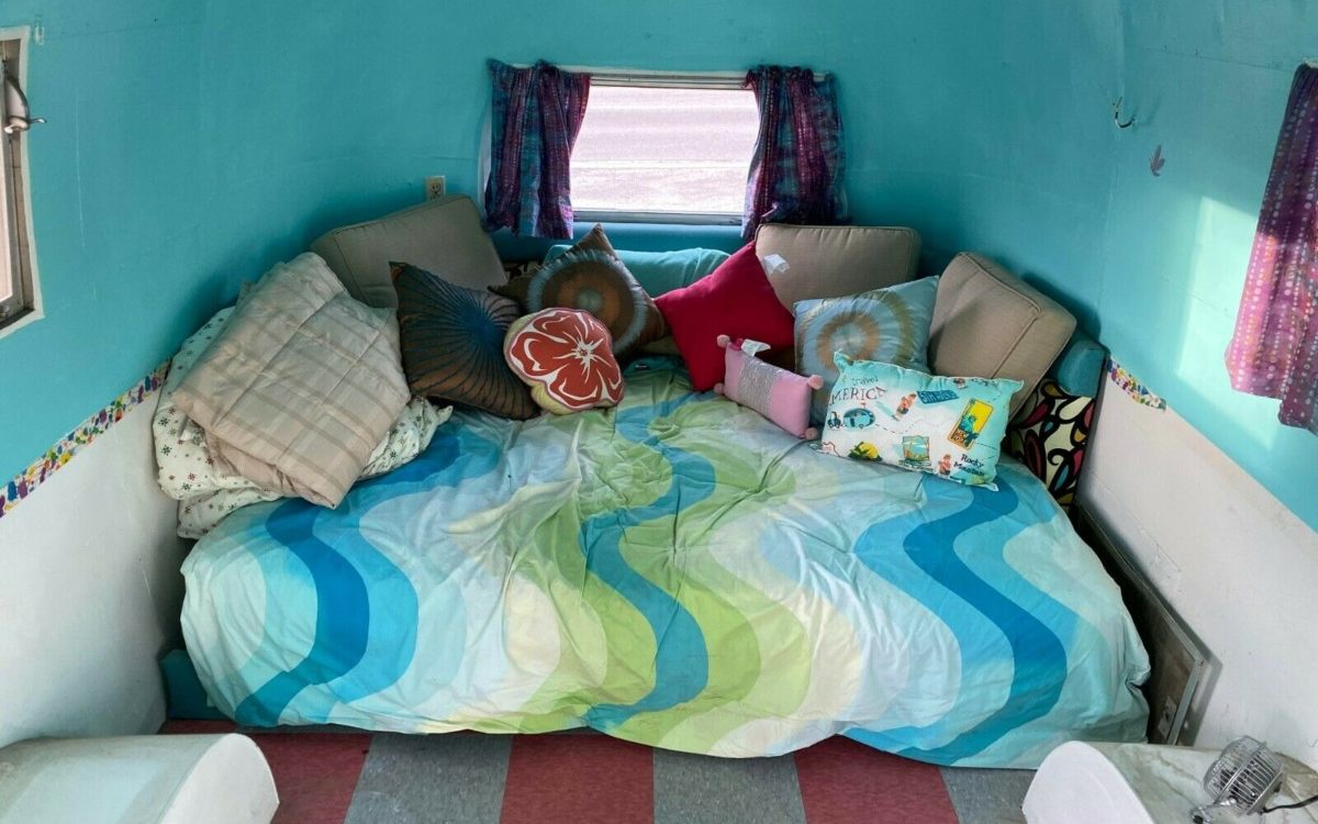The rear portion of the trailer features the sleeping area. There is definitely an opportunity for some custom cabinets or storage space to be built. With just a stove, this is less of a camper and more of a hang-out. There were a lot of floor plans available for these trailers over the years. With some creativity, this one could be modified for anyone’s needs. What would you do with it?