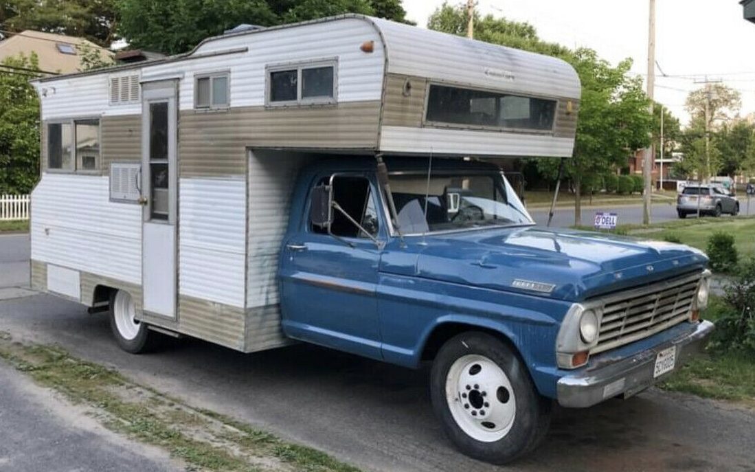 1967 marked the first year for the 5th generation Ford pickup. For the past several years their values have grown steadily and they are now amongst the most popular of the F-Series trucks. Out of the hundreds of thousands of these trucks that were made, not very many were converted to full-time campers like this ’67 F-350 was. It can be found here on eBay with a buy-it-now price of only $5,500. According to the seller, this truck came out of California and is a nearly rust-free example of a 55-year-old truck. As you will see the camper needs a bit of attention, but the ad says it doesn’t have any leaks, which is a plus. Now located in Saugerties, New York, this truck is ready for a cool retro-camper build. If you’ve been looking for a cool old camper project, check this one out!