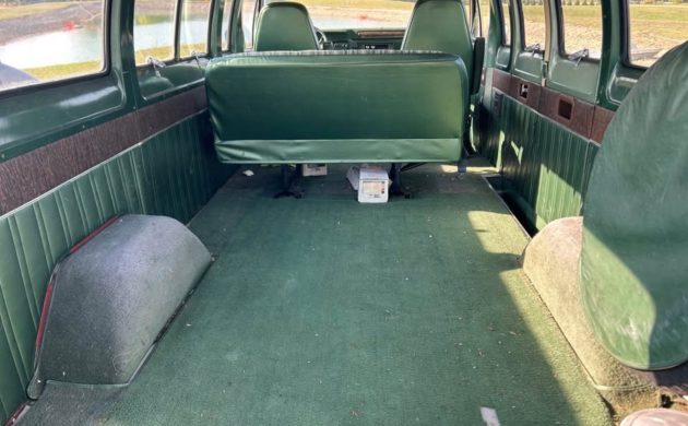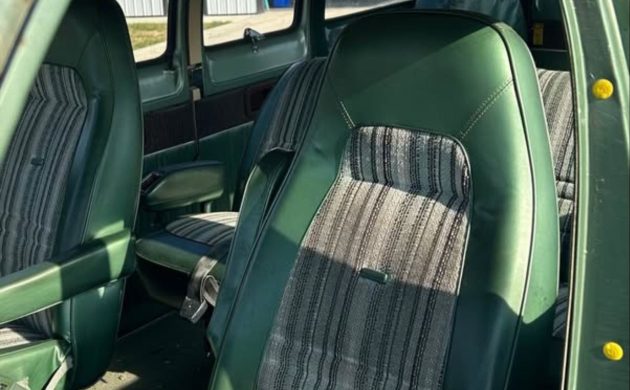 Plymouth vans didn’t survive in the same numbers as their Dodge counterparts, and spotting one today is an event in itself. The exterior wears a deep green finish that captures the spirit of the decade, and the seller points out that the van will come with both the original full-size Plymouth hubcaps and a set of “dog dish” caps, giving the next owner a choice of period-correct looks.