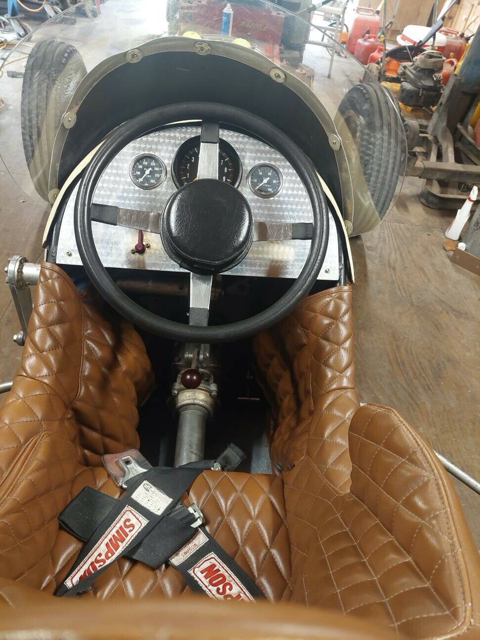 When I examine the interior of this retro racer, it looks positively luxurious compared to my last car. The dash appears to be machine-turned alloy and features a tachometer, oil pressure gauge, and temperature gauge. The wheel is a large diameter item to reduce steering effort. This is essential because this Sprint Car would not feature power steering. The cockpit is lined with diamond-quilted vinyl, which is in excellent condition. You can see the lever below the wheel for the in/out dog box. This feature later moved to a lever-lock to the driver’s right in modern cars, but the setup we see here is typical of the era. One non-original feature inside this car is the Simpson race belt. Drivers in the 1950s rarely used any belt or harness, believing that it was better to be thrown from the vehicle in the event of an accident. When you look at the rollover protection these vehicles provide, it’s easy to see the logic involved. Personally, I’d want to stay attached firmly to my car because once you’ve left it, that leaves you vulnerable to being run over by any following traffic. Overall, the interior appears to be period-correct and in excellent condition.