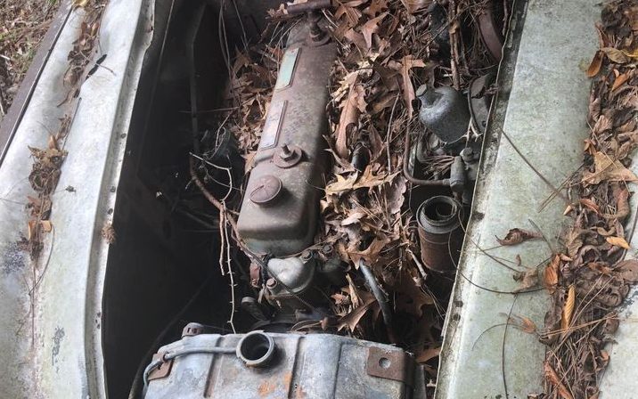 And now for something in the “From whence it came, it shall return” department courtesy of a 1958 Austin-Healey 100-6. Found in the woods of Mena, Arkansas, where it has been decaying for probably some number of years, it’s now looking for a new caretaker as the seller claims, “Great for a project!!“. This A-H roadster was discovered by Terry and is available, here on Facebook Marketplace for $8,000.