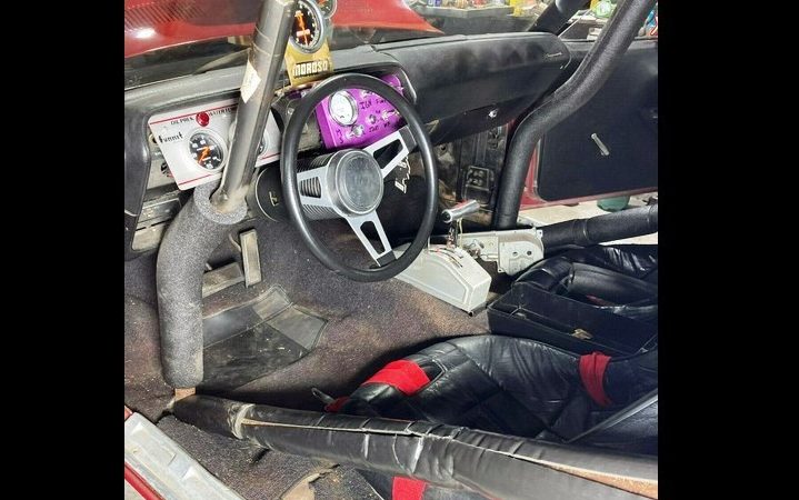 Racing instruments have not destroyed the factory dash cluster, according to the seller, and while continuing to drag-race the car or even converting it into a power tour monster would be easier than restoring it to factory perfection, anything is possible.