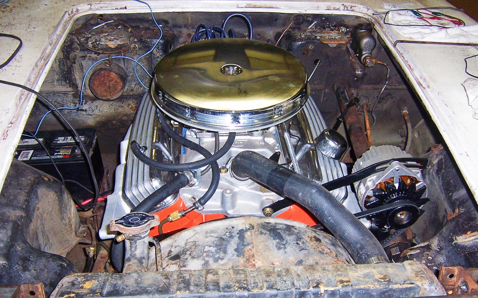 Looks great outside drive it ! , but why not paint the engine Bay Area before dropping in motor. Black at least, looks terrible .