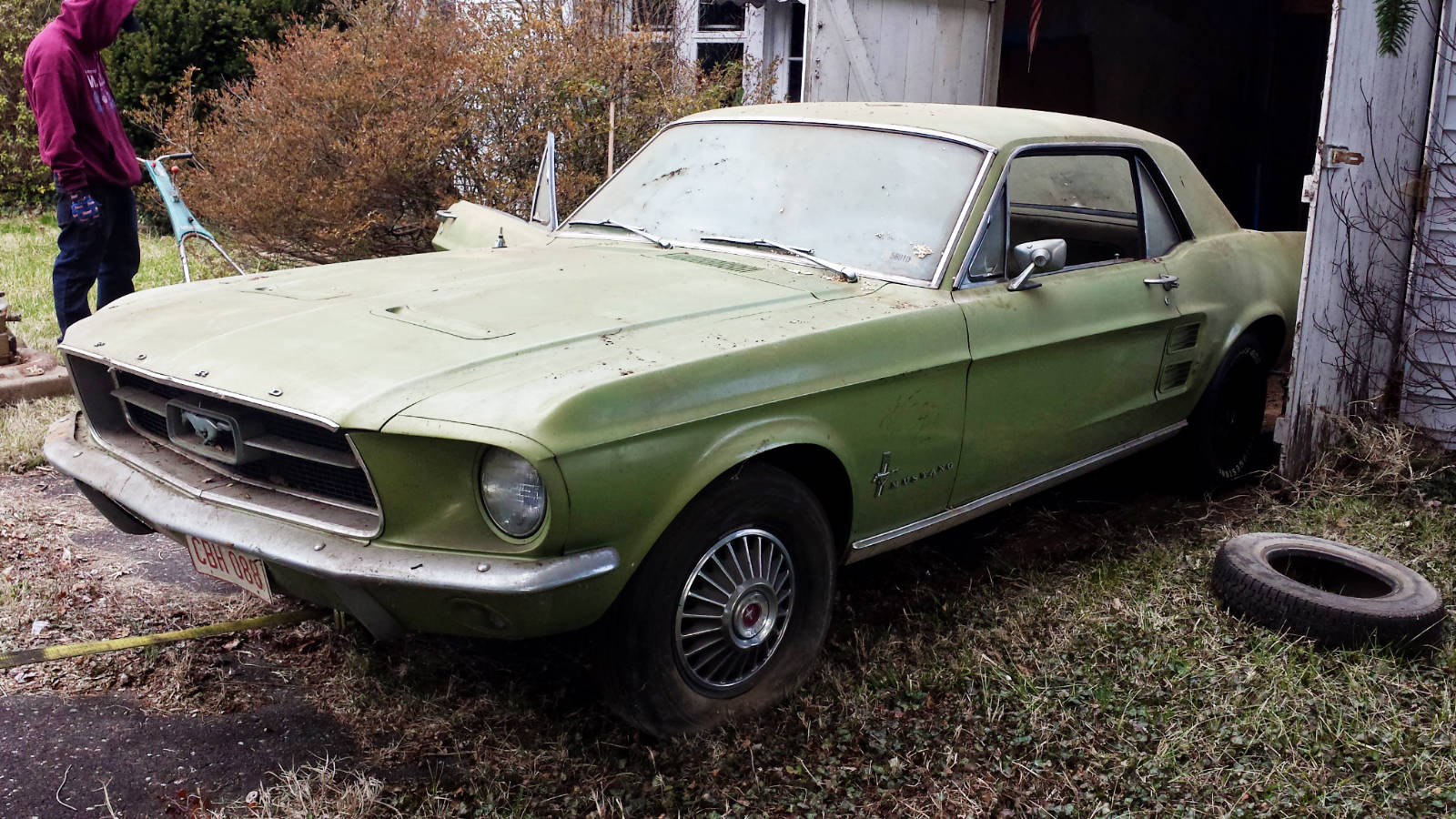 Reader Greg W recently emailed us about a Mustang Coupe. You see, he had recently heard from his cousin Eve that the time had come to get her 1967 Mustang out of the barn and sold. She has owned the car since new but parked it a few decades ago and that’s where it has stayed. Greg restores Jaguars, so he knows his way around a classic car, but he wasn’t sure if he should clean it up or leave it covered in the dust. He’s done a great job detailed the experience of extracting Eve’s Mustang, so we just had to share it. I’ll let him take you on this journey in his own words below!