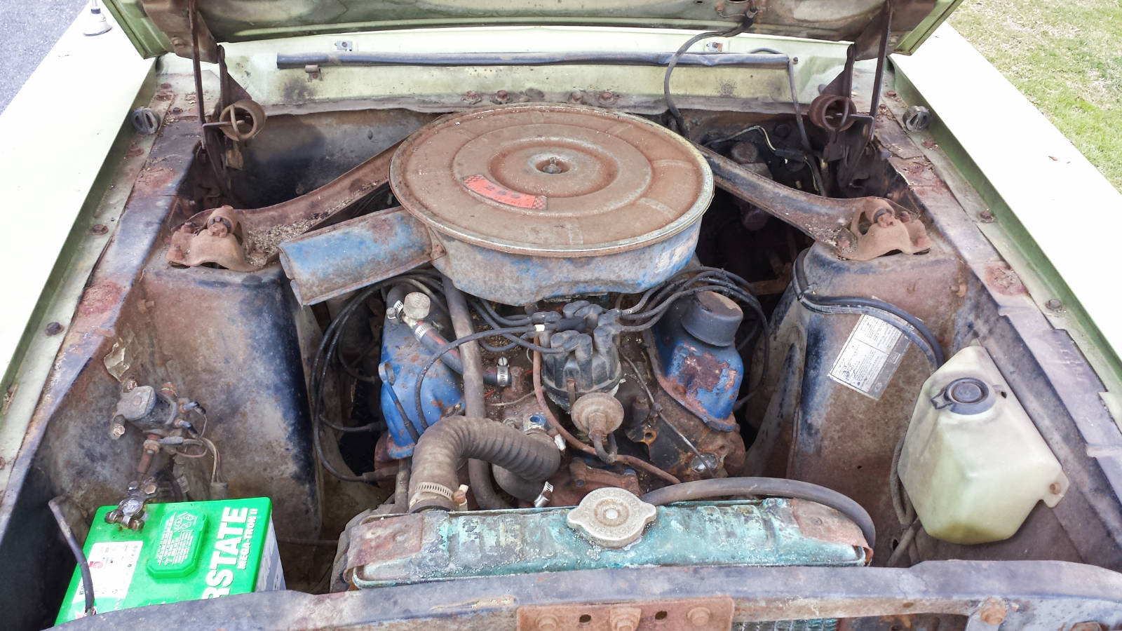 The engine compartment on Mustangs were painted semi-gloss black. What a cool find and it’s great that the car will stay in the family. The closest to a barn find for me is a 1966 German export mustang (T-5) convertible that I bought back in 1990. It hadn’t been sitting in the garage long before I bought it but it has sat in my garage (untouched) since then. I bought the car for my wife but life got in the way and we never got to restoring it. Now it’s time to finally restore it for her so we can take it to events along with my 65 Mustang Fastback 2+2.