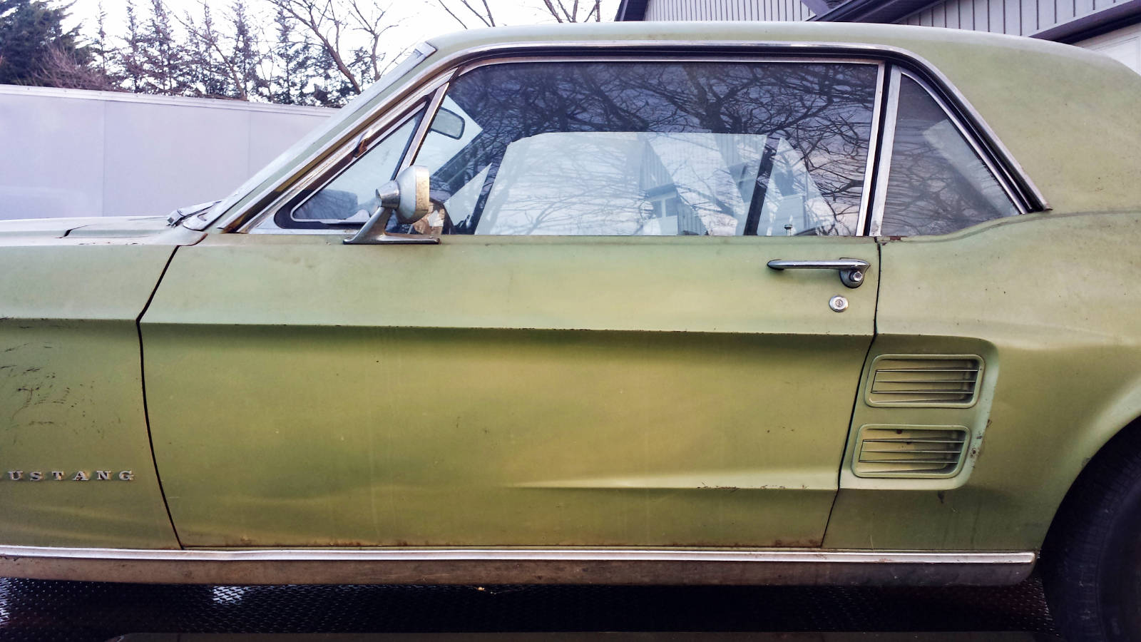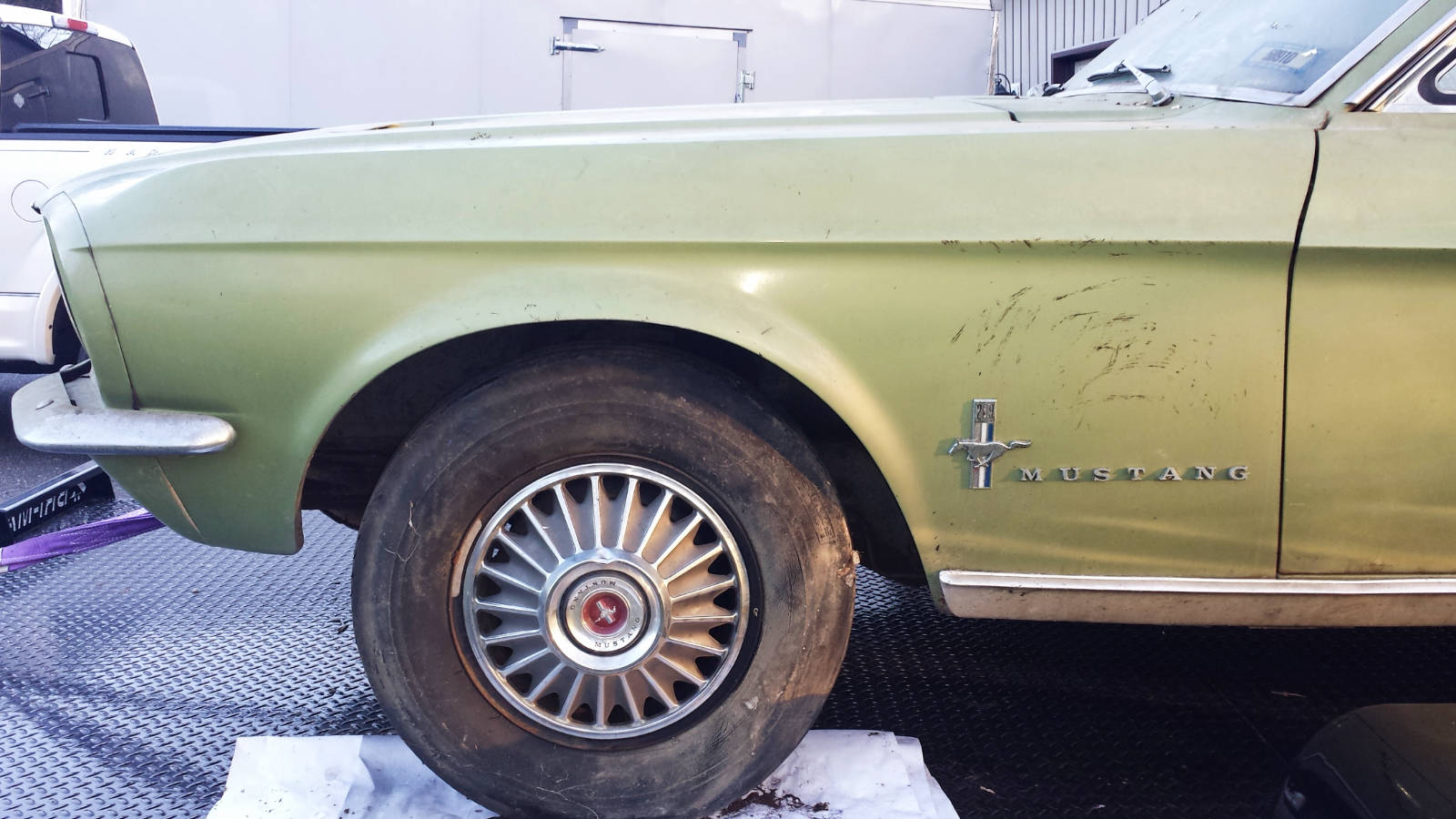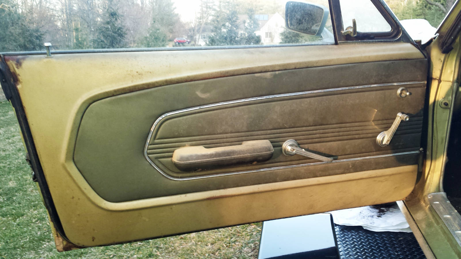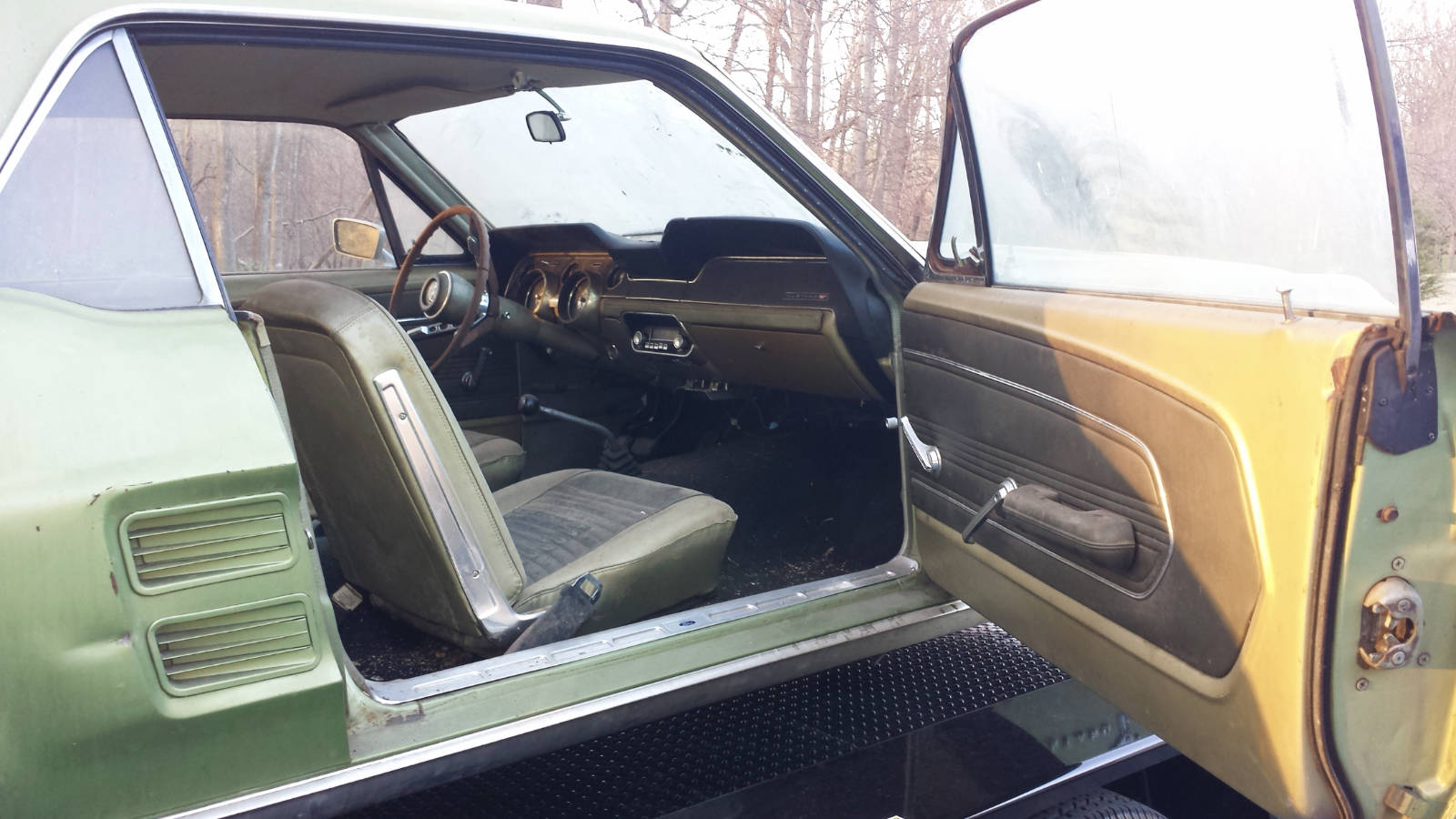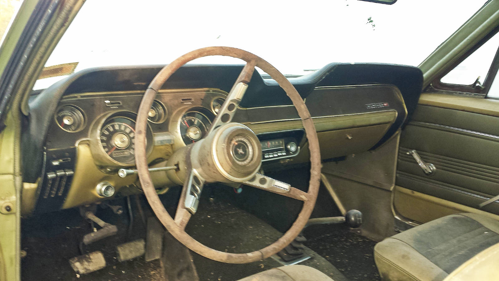 From Greg – My cousin “Eve” purchased her 1967 Mustang 289 3-speed coupe new from Wolf Ford in Lancaster, PA in August 1967 for a little over $2,500.ย After 11 years and 85K miles, she purchased a new Datsun pickup truck for her daily driving and parked the Mustang in her Baltimore suburb garage where it would live for the next 40 years. We’ve talked about the car for several years, and this year she made a firm commitment to extract the car, and clear out the house – time to sell.