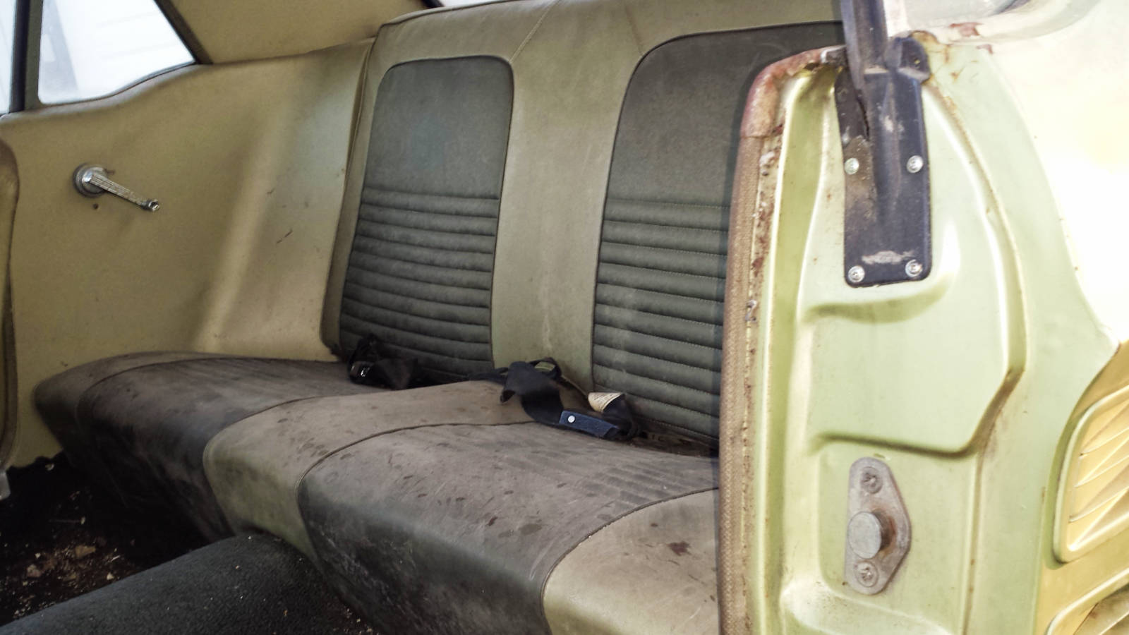 Eve did not find the keys, so I removed the rear seat and reached in to unlock the trunk by hand – a new key/lockset is on order. There were a few huge mouse nests under the seats and in the air cleaner, so we have to presume the seats will need all new stuffing.