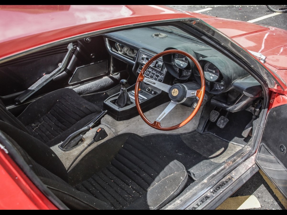 The Montreal’s right-hand drive configuration makes it one of just 55 UK-supplied models ever made, a number I’ll readily agree with having never before seen one of these with the RHD setup. The Alfa will almost certainly remain a UK market car, as any fans of the model and marque on the other side of the pond likely know how impossible it is to find one of these with the steering wheel where they want it. The Montreal has apparently survived in very good condition inside and out, as the interior presents well with no obvious issues beyond needing a cleaning. The dash isn’t cracked and the wood-rimmed steering wheel looks spectacular. All of the original switchgear in the center stack appears to be present and unmodified as well.