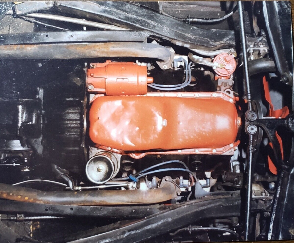 The orange paint on the starter is intentional. As is the generator, steering column, and master cylinder. Customizing to your personal taste wasn’t a big deal 35 years ago. You coulda bought 10 of these for this money. That undercoat is fresh however, no way it’s been on there 35 years. I feel the orange is new also. Which begs the question, why? Nothing in this pic is 35 years old so why do all this cleaning/adulterating if your going to sell it as a barn find? Engine stuck? If it’s non original I’d think it’d be worth as much without an engine at all.
